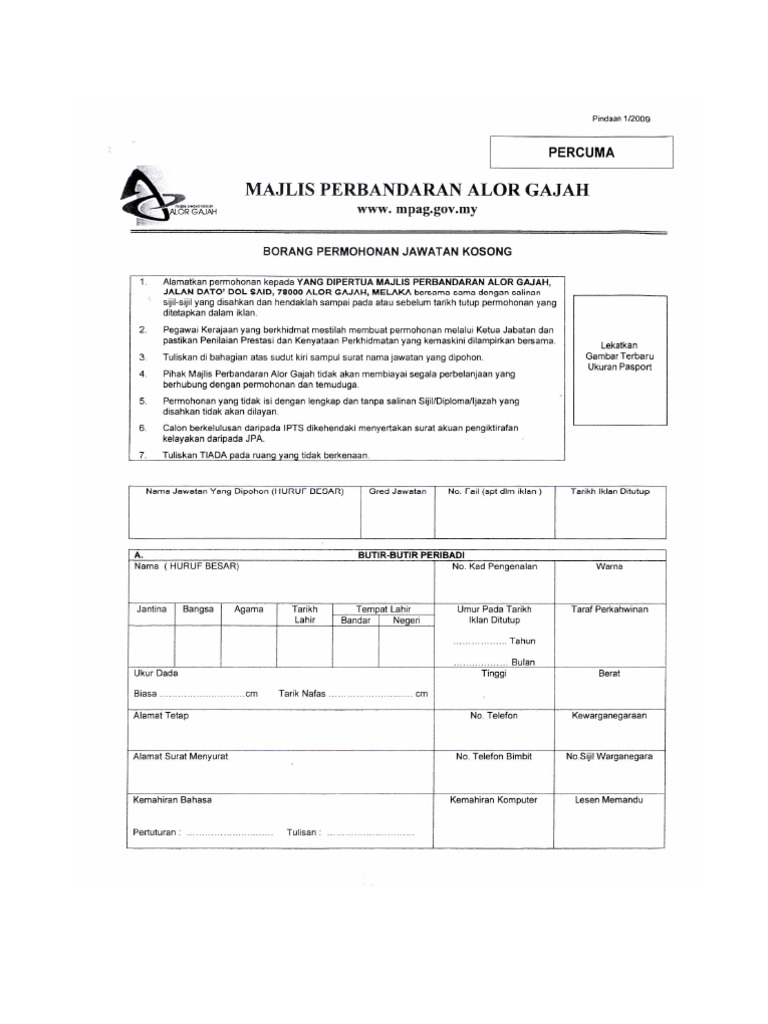 Jawatan Kosong Alor Gajah - Maklumat kekosongan ini adalah seperti yang diiklankan.. Malaysia ), which acts as the central jawatan kosong terkini ippbm 2012. Jawatan kosong kerajaan terkini di majlis perbandaran alor gajah (mpag) ogos 2016. Sebarang info bagi pengambilan guru mrsm terbaru akan dikemaskini disini dari masa ke semasa. Candidate must possess at least diploma/advanced/higher/graduate diploma in finance/accountancy/banking or equivalent. Borang permohonan hendaklah disi dengan lengkap dan mengikuti segala arahan yang.